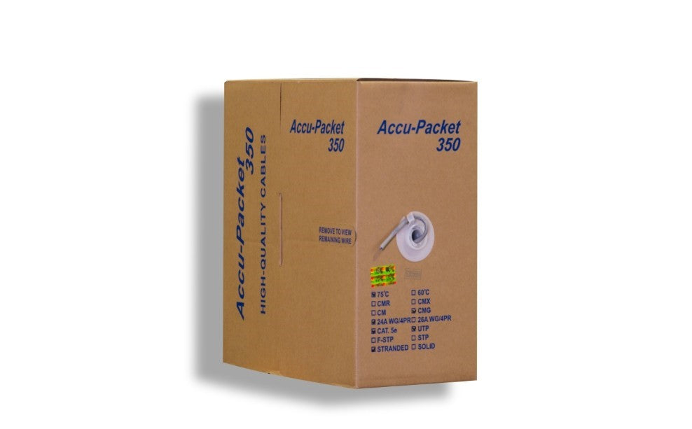 Our 1000-ft category 5e stranded bulk cable is best suited for patch (outside wall) cabling applications. Stranded core conductors allow the cable to be very flexible. This flexibility allows the cable to be flexed many times without negative effects on its performance. As such, the stranded bulk cable is perfect for building patch cables.